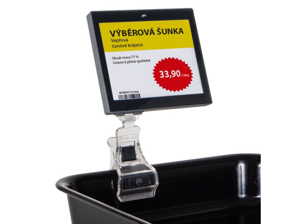 Držák elektronických cenovek s kloubem a svorkou, transparentní, délka 10 mm. Lze kombinovat s UNI držákem 203527 (nutno objednat zvlášť), který je kompatibilní s ESL: