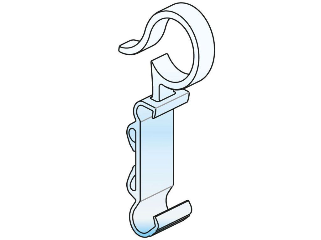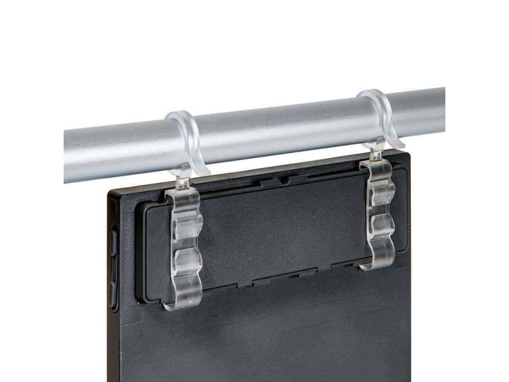 Držák elektronických cenovek, pro zavěšení na trubky o průměru 12 nebo 16 mm, možnost přidat poutač do boční polohy. Balení 20 ks.