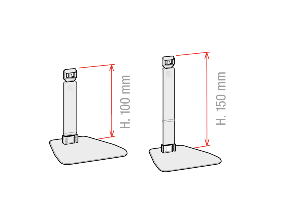Držák elektronických cenovek s nastavitelným sklonem, dvoudílný (základna + stojánek). Výška 100 nebo 150 mm, dle varianty. Lze kombinovat s UNI držákem 203527 (nutno objednat zvlášť), který je kompatibilní s ESL: