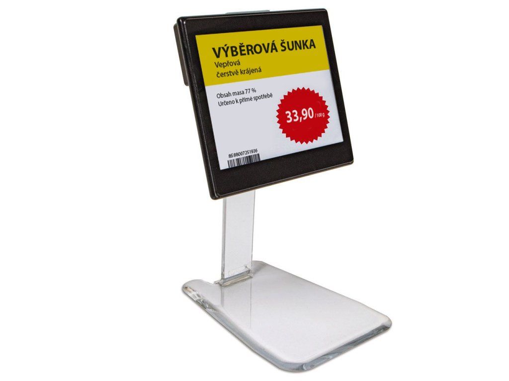 Držák elektronických cenovek s nastavitelným sklonem, jednodílný, se stojánkem. Výška 130 mm. Lze kombinovat s UNI držákem 203527 (nutno objednat zvlášť), který je kompatibilní s ESL: