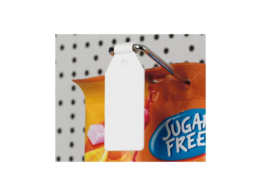 Držák cenovky bílý, na polepení, 25 x 38 mm, na drát 6 mm.