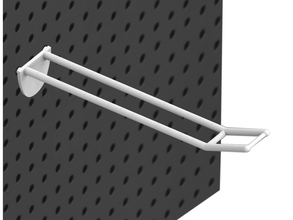 Kolík do děrované stěny (rozteč otvorů 25 mm), různé délky (podle varianty). S hrazdou na cenovku (délka hrazdy 40 mm). Délka kolíku je uvedena bez hrazdy, délka s hrazdou je vždy o 40 mm větší.