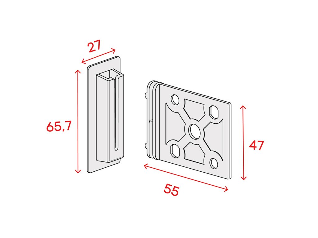 Houževnaté a lehké držáky polic do kartonových stojanů, 55 x 47 mm.